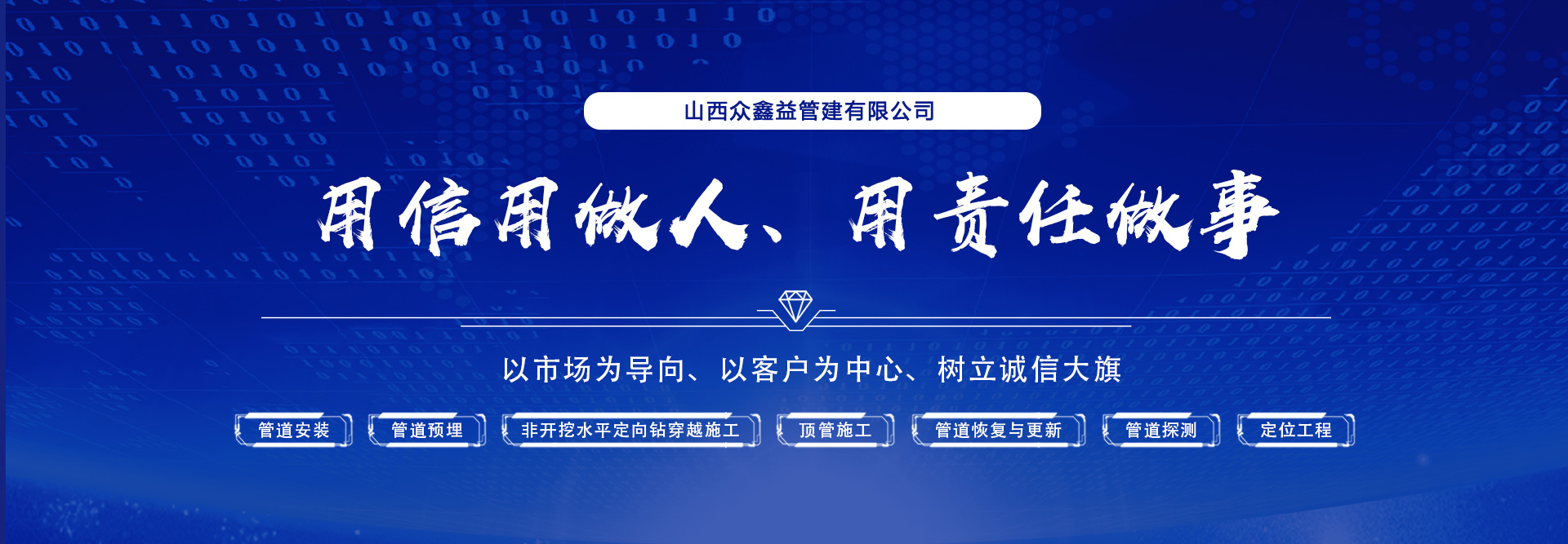 山西眾鑫益管建有限公司成立于2013年8月,注冊(cè)資金5000萬元人民幣。是一家主要致力于管道安裝、管道預(yù)埋,非開挖水平定向鉆進(jìn)穿越施工,管道修復(fù)與更新、管道探測、管道定位,建筑工程機(jī)械與設(shè)備租賃的企業(yè)。